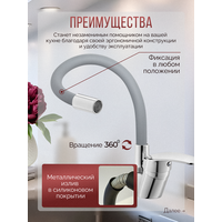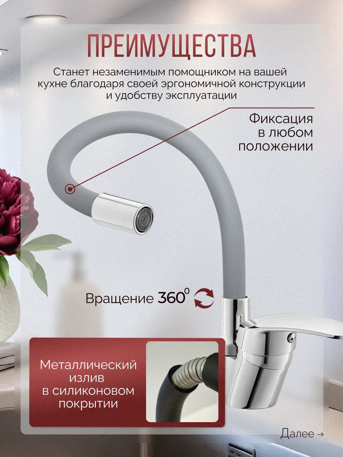 Смеситель для кухни с гибким изливом, кран для кухни гибкий серый: сравнение цен, характеристики, фото, актуальное наличие и цены.