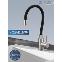 Смеситель для кухни с гибким изливом, кран для кухни RICARDO R4087-3, нержавейка, цвет черный/хром: сравнение цен, характеристики, фото, актуальное наличие и цены.