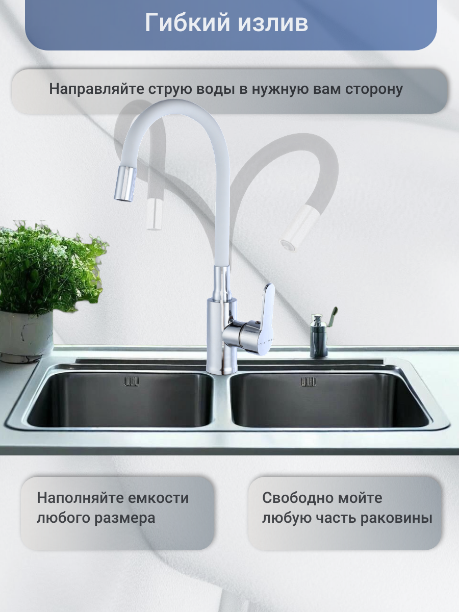 Смеситель для кухни с гибким изливом, кран для раковины, для мойки, белый: сравнение цен, характеристики, фото, актуальное наличие и цены.