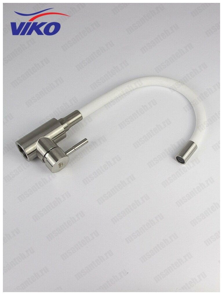Купить Смеситель для кухни с гибким изливом на мойку из нержавеющей стали VIKO V-4448 цвет белый серебро с доставкой по всей России.