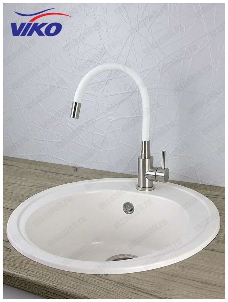 Смеситель для кухни с гибким изливом на мойку из нержавеющей стали VIKO V-4448 цвет белый серебро: сравнение цен, характеристики, фото, актуальное наличие и цены.