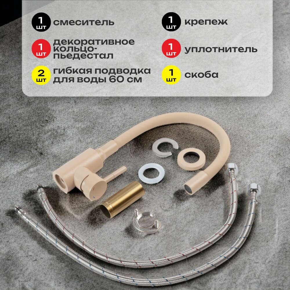 | Комплектация | Смеситель, прокладки и уплотнитель, подводка на горячую и холодную воду длиной 40 см, гарантийный талон |