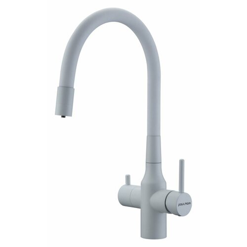 Смеситель для кухни с гибким изливом Paulmark SALIX, подключение к фильтру питьевой воды с отдельным каналом, двурычажный, поворотный, латунь / силикон, на мойку, белый матовый, Sa213419-431: сравнение цен, характеристики, фото, актуальное наличие и цены.