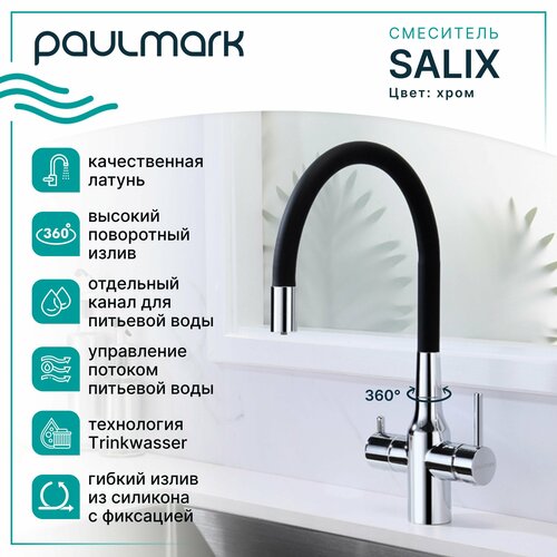 Смеситель для кухни с гибким изливом Paulmark SALIX хром, с подключением фильтра питьевой воды, Sa213419-CR: сравнение цен, характеристики, фото, актуальное наличие и цены.