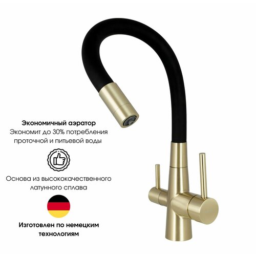 Смеситель для кухни с гибким изливом под фильтр для питьевой воды, высокий, поворотный 360 градусов, Lemen, латунь, черный, бронза: сравнение цен, характеристики, фото, актуальное наличие и цены.