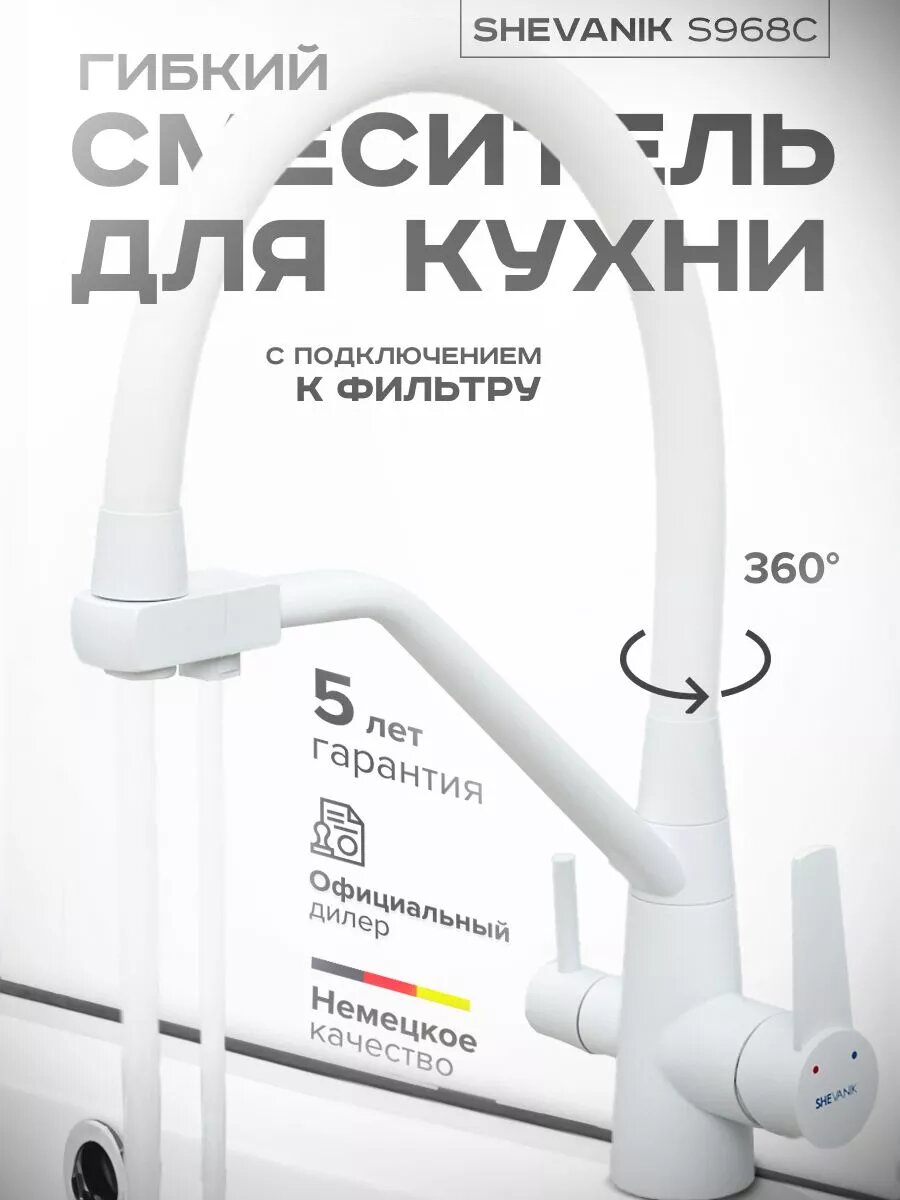 Смеситель для кухни с гибким изливом с фильтром S968С белый: сравнение цен, характеристики, фото, актуальное наличие и цены.