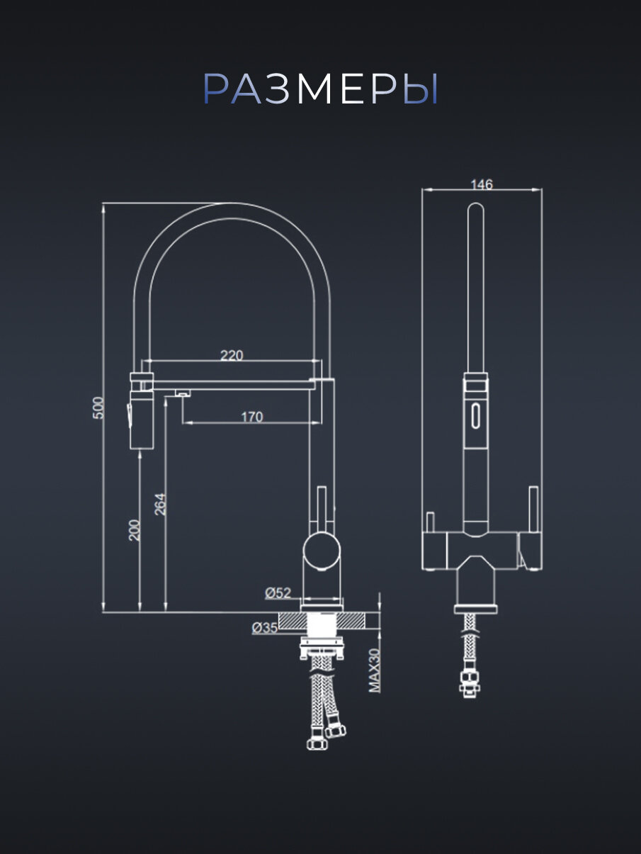 Смеситель для кухни с гибким изливом, с подключением для фильтра, матовая медь: сравнение цен, характеристики, фото, актуальное наличие и цены.