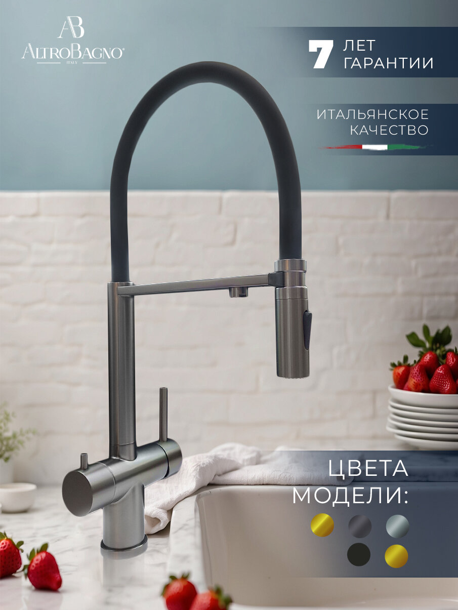 Смеситель для кухни с гибким изливом, с подключением для фильтра, оружейная сталь: сравнение цен, характеристики, фото, актуальное наличие и цены.