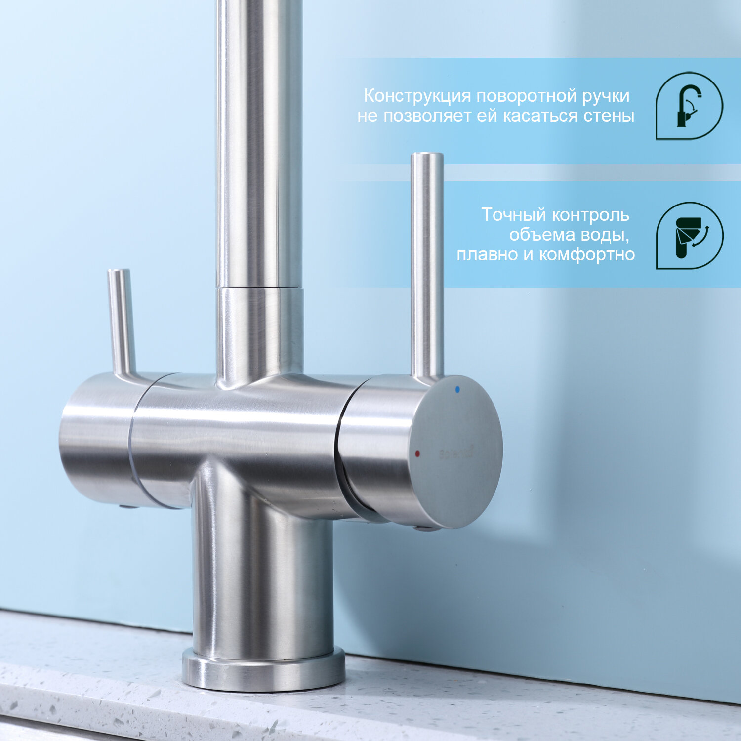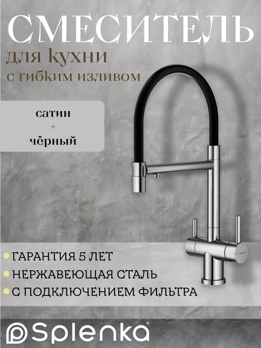 Смеситель кран для кухни с гибким изливом Splenka S70.63.05 сатин/черный с аэратором: сравнение цен, характеристики, фото, актуальное наличие и цены.