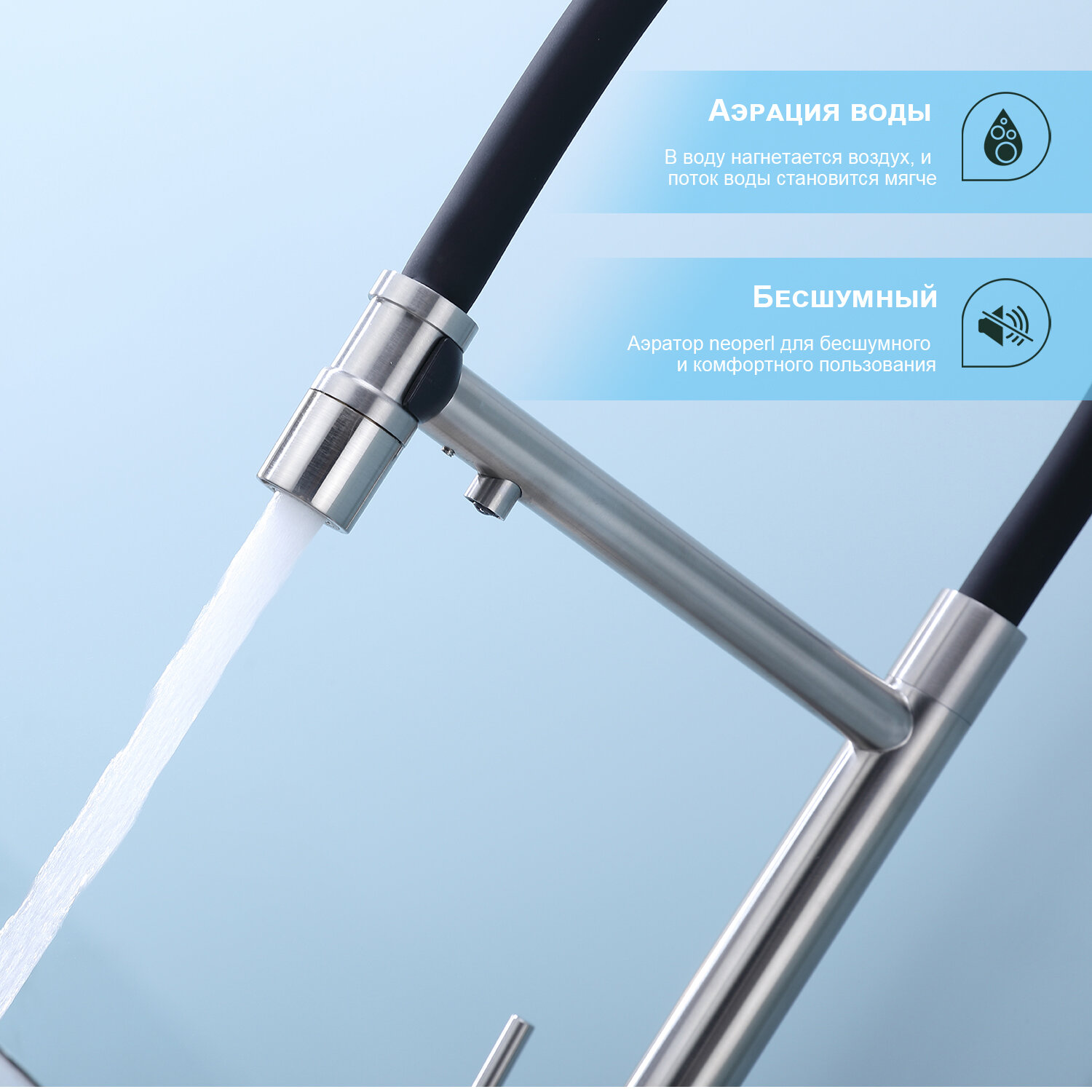 Смеситель кран для кухни с гибким изливом Splenka S70.63.05 сатин/черный с аэратором