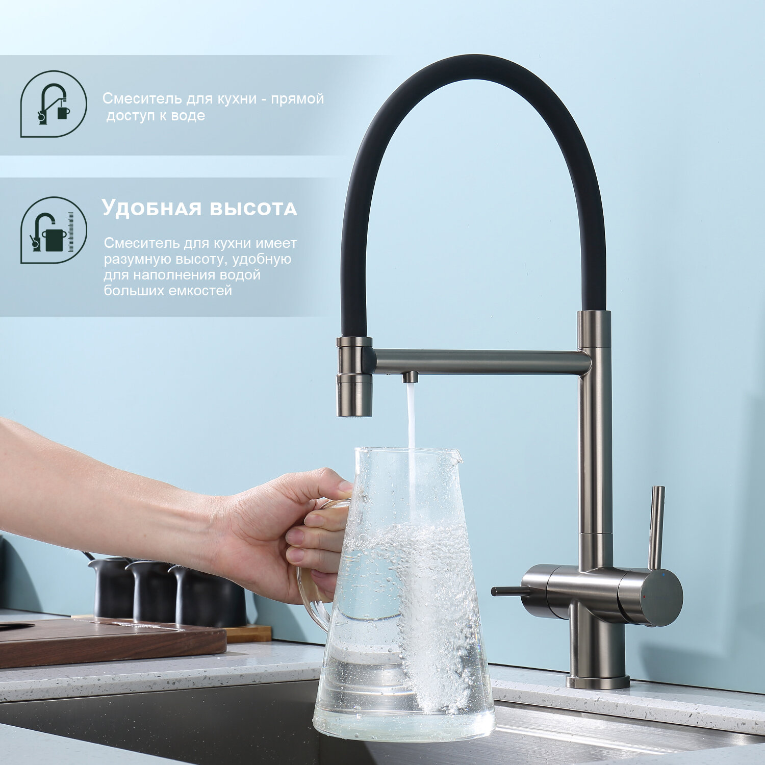 Купить Смеситель кран для кухни с гибким изливом Splenka S70.63.09, графит + черный с доставкой по всей России.
