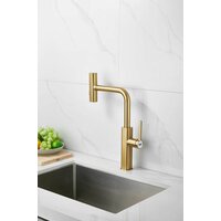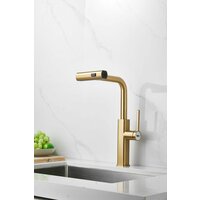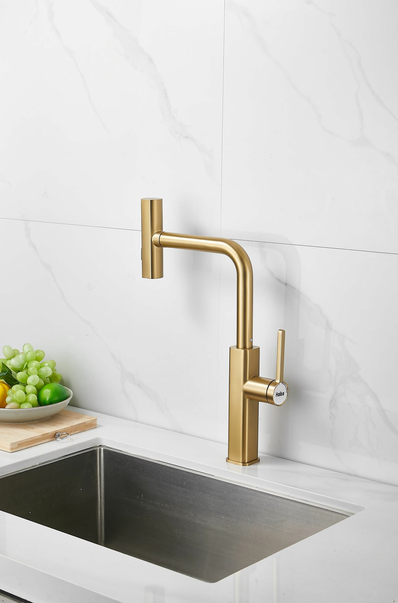 Смеситель для кухни с выдвижной лейкой и поворотным изливом HAIBA HB73824-5, золотой, нержавеющая сталь