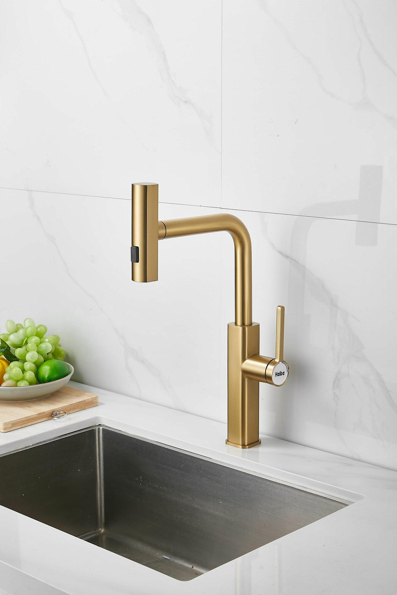 Смеситель для кухни с выдвижной лейкой и поворотным изливом HAIBA HB73824-5, золотой, нержавеющая сталь: сравнение цен, характеристики, фото, актуальное наличие и цены.