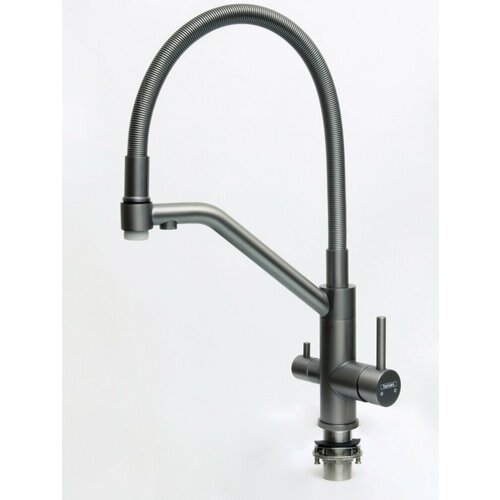 Смеситель для кухни с гибким шлангом и под фильтр 15056-G (сатин) от бренда Hansen - это высококачественный продукт, который сочетает в себе функциональность и эстетику.