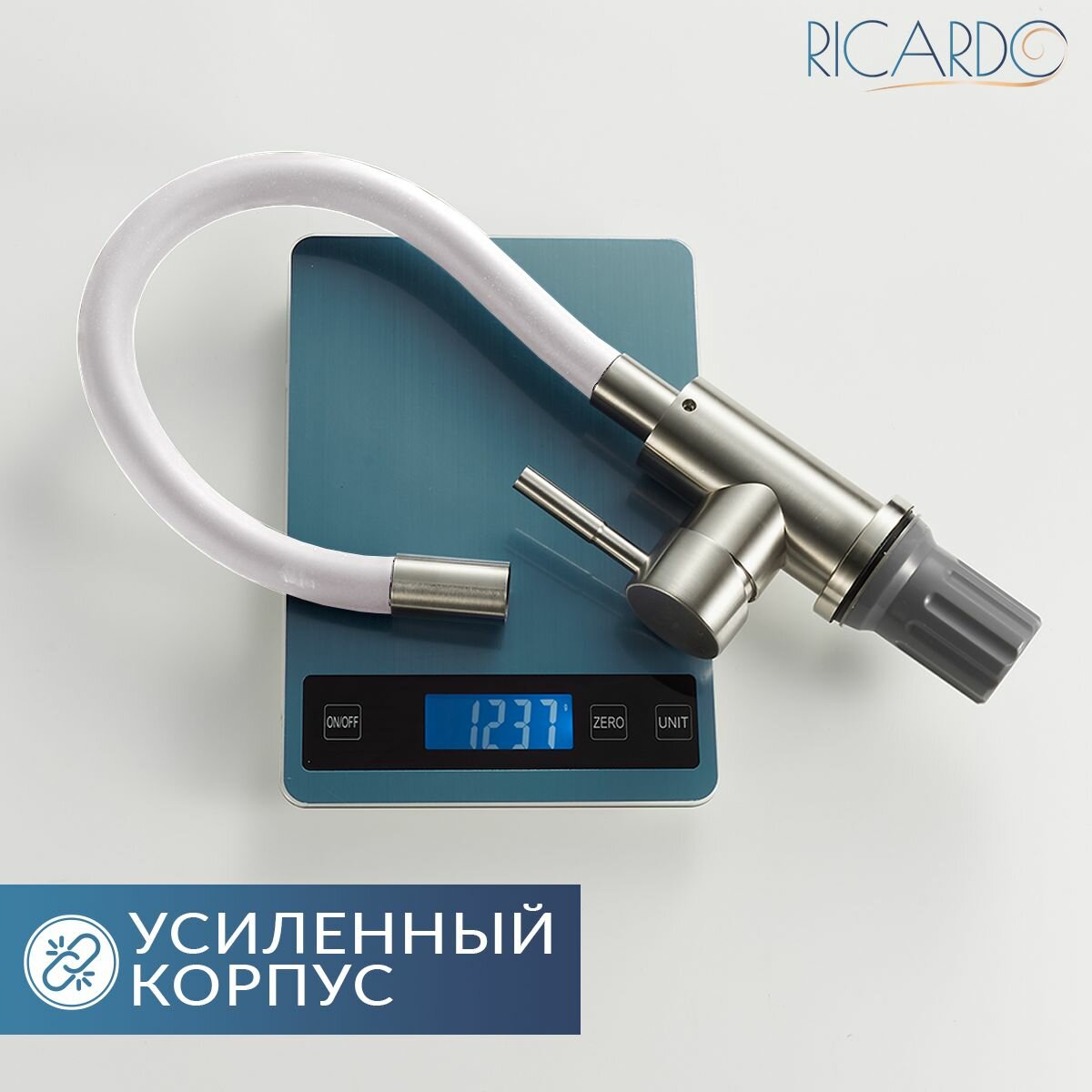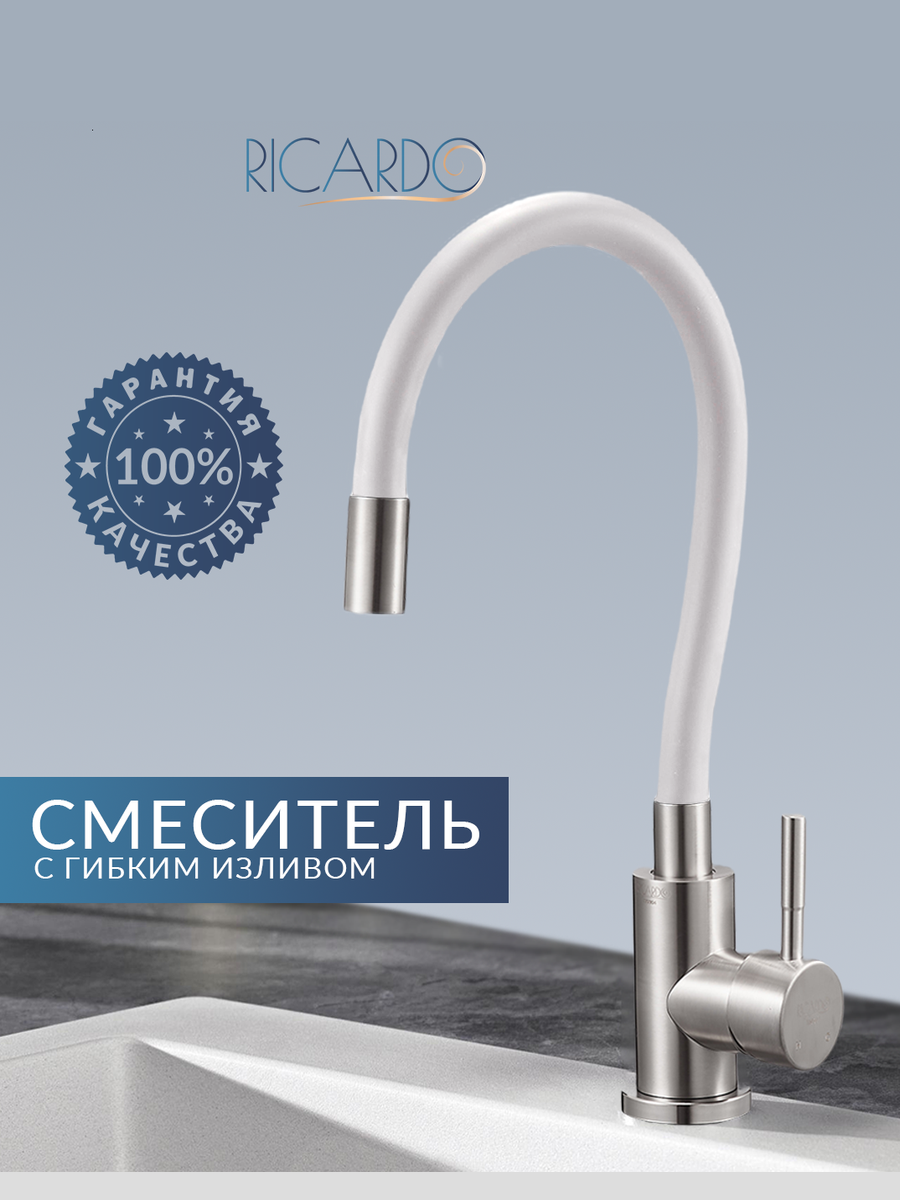 Смеситель для кухни Ricardo R4087-5, гибкий излив, нержавеющая сталь, белый: сравнение цен, характеристики, фото, актуальное наличие и цены.