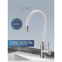 Купить Смеситель для кухни Ricardo R4087-5, гибкий излив, нержавеющая сталь, белый с доставкой по всей России.
