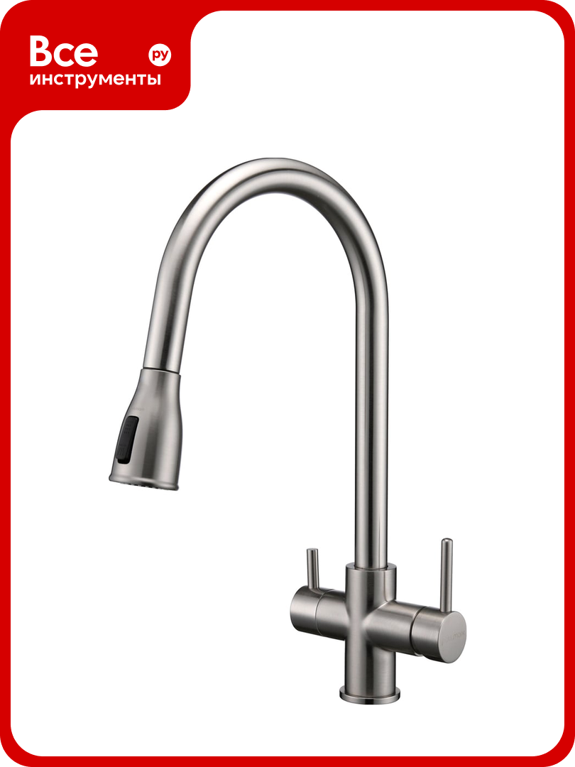 | Дополнительная информация | Вытяжной шланг Конструкция смесителя с вытяжным шлангом значительно облегчает процесс мойки посуды или продуктов любого размера и формы. Поворотный излив 180° Увеличивает функциональность. Универсальный дизайн. Прекрасно впишется в любой интерьерный стиль. |