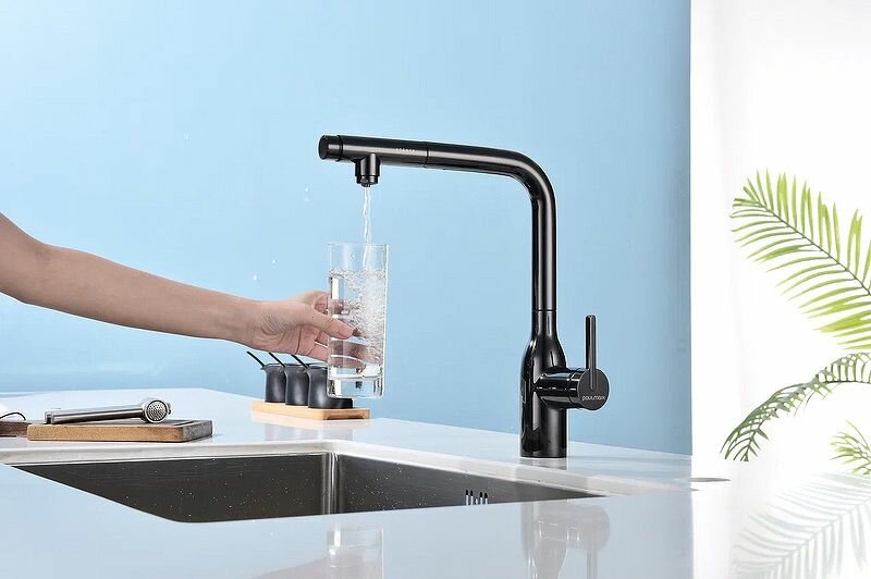 Смеситель для кухни с выдвижным изливом Paulmark VIPER глянцевый черный, с подключением фильтра питьевой воды, Vi213105-GB: сравнение цен, характеристики, фото, актуальное наличие и цены.