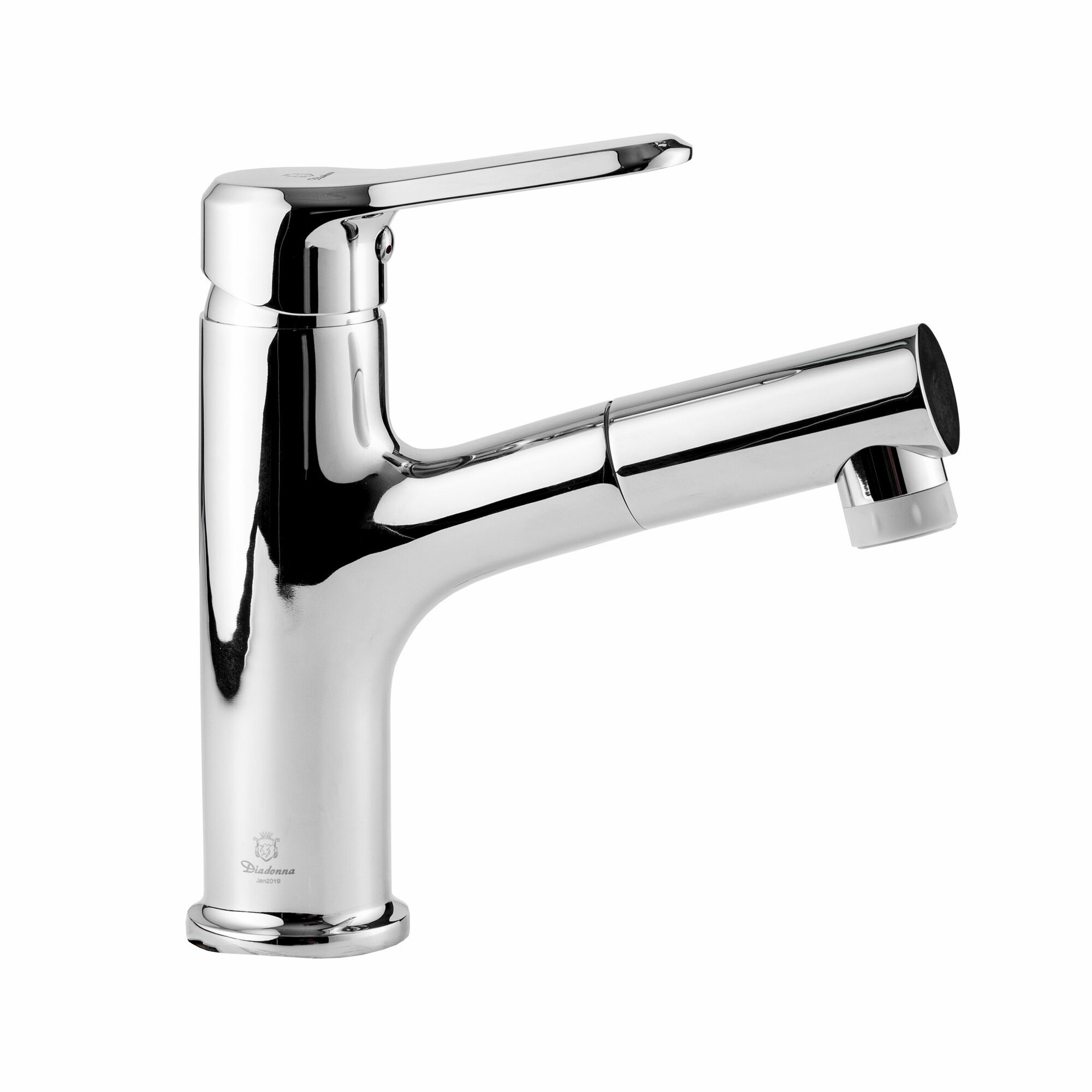Смеситель для кухни с коротким изливом и выдвижной лейкой, хромированный