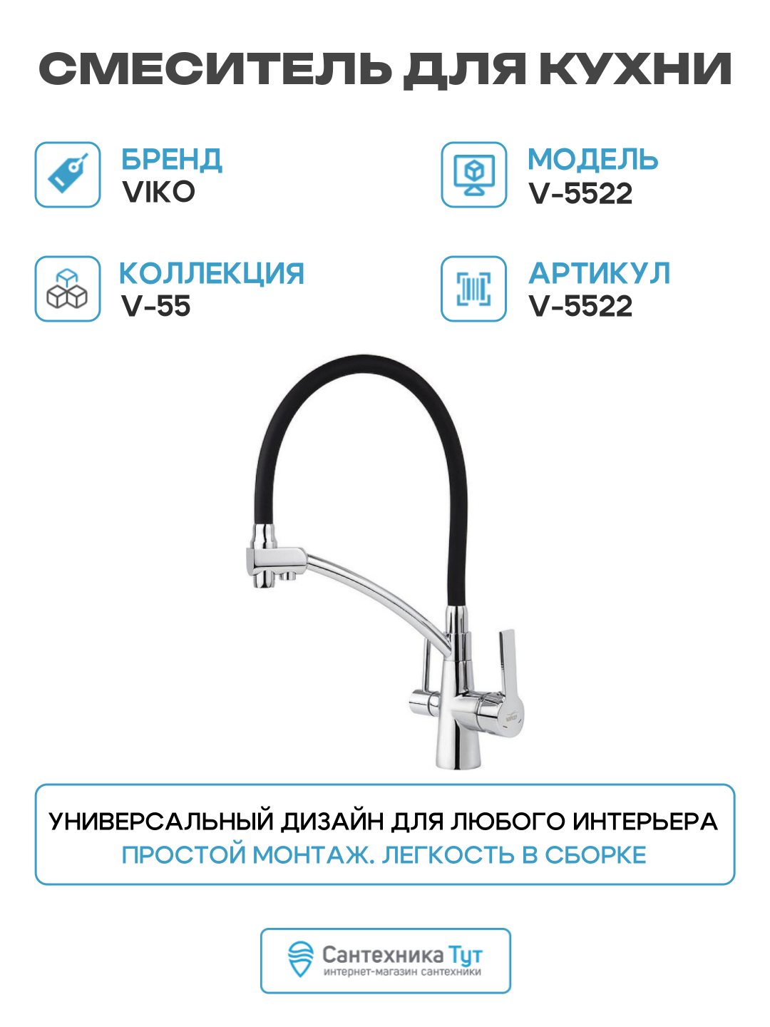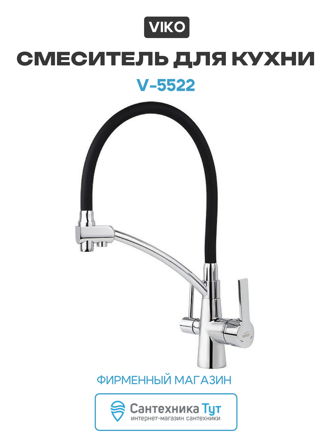 Купить Смеситель для кухни с краном для питьевой воды VIKO V-5522 с черным гибким изливом хром с доставкой по всей России. Смеситель для кухни с краном для питьевой воды VIKO V-5522 с черным гибким изливом хром: сравнение цен, характеристики, фото, актуальное наличие и цены.