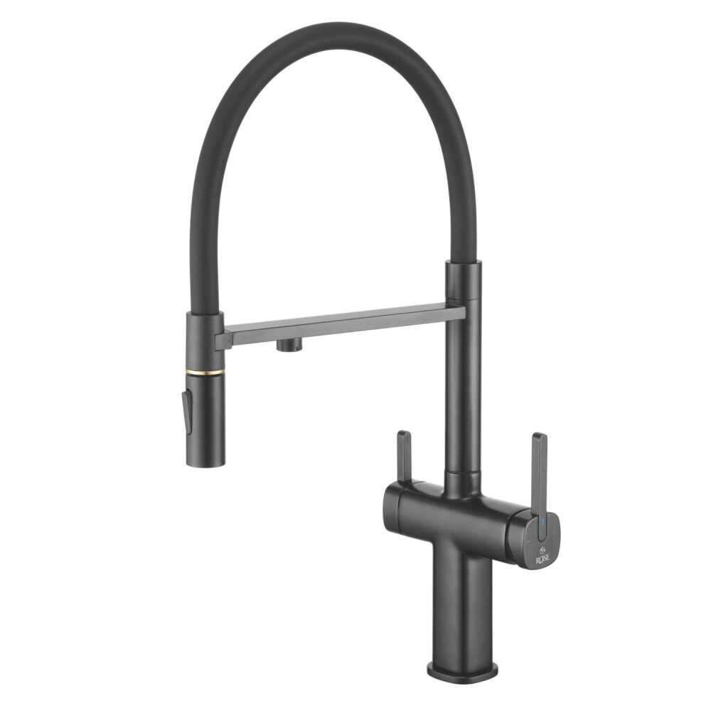 Купить Смеситель для кухни с гибким изливом и подключением фильтра Rose R358H черный с доставкой по всей России.