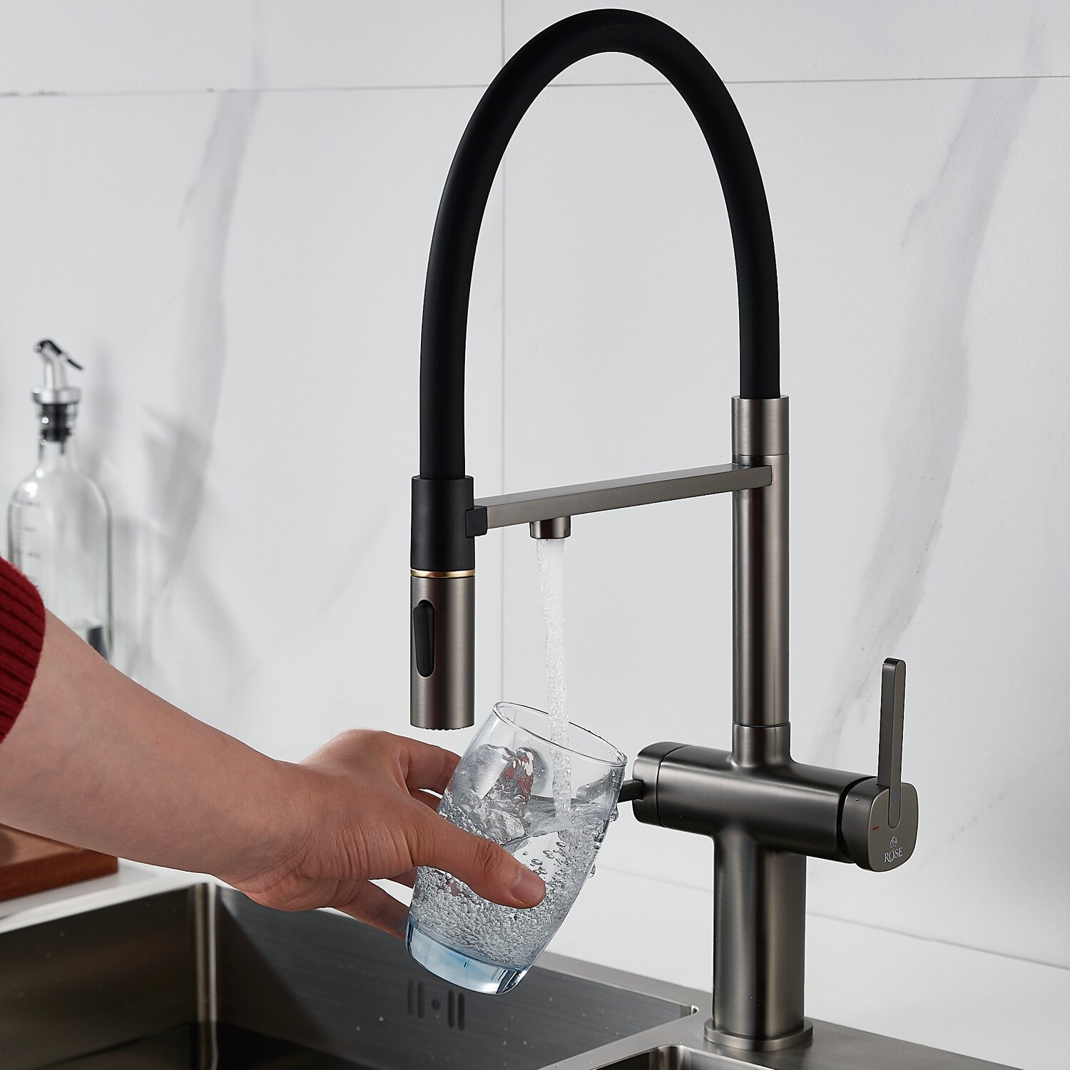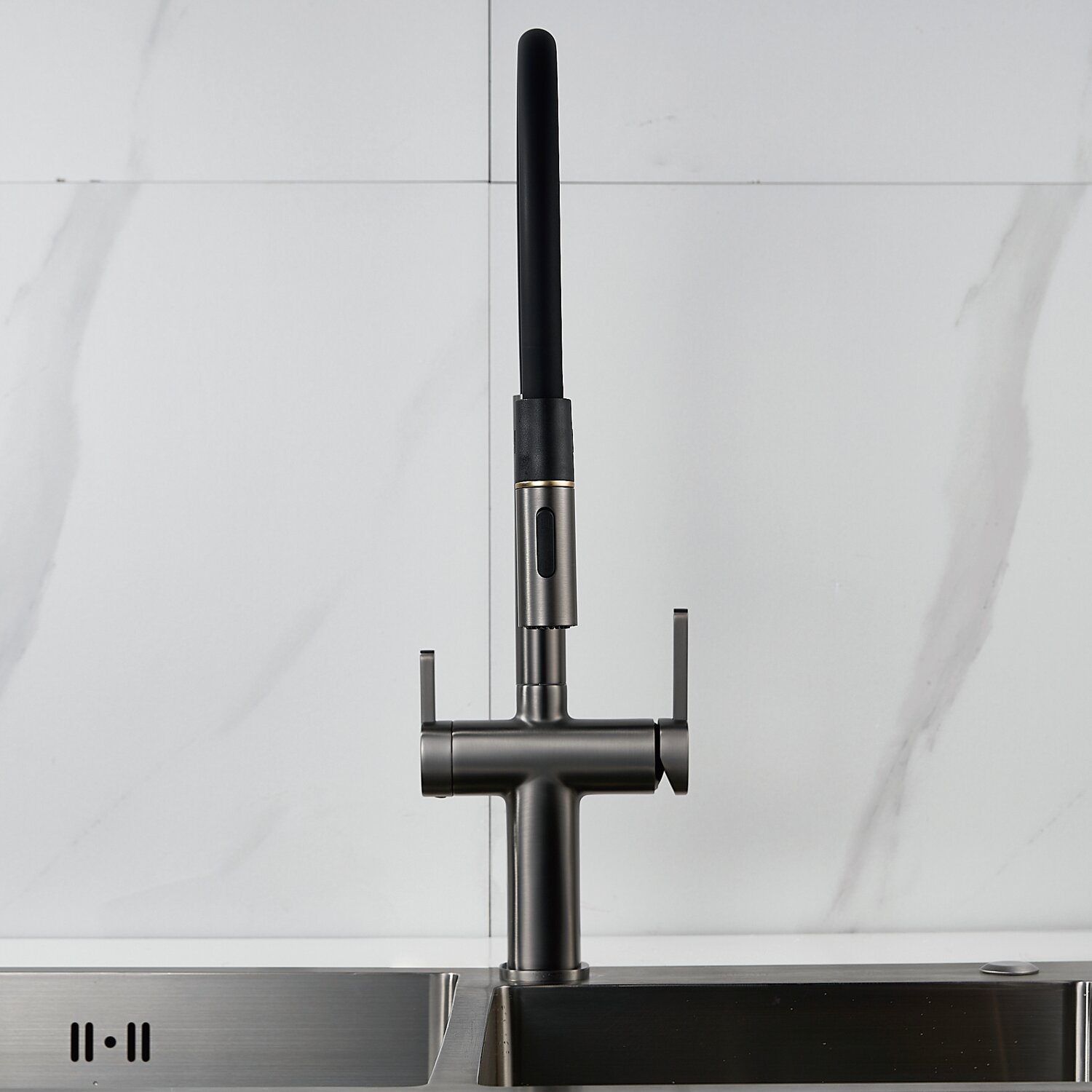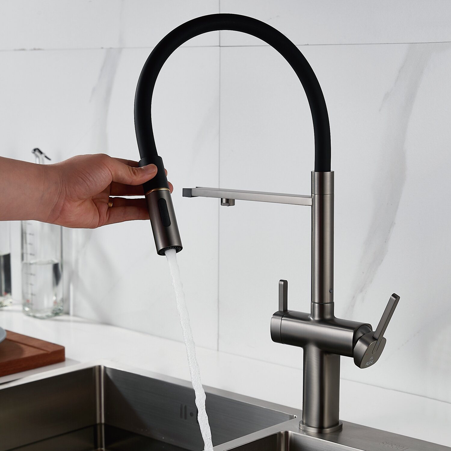 Смеситель для кухни с гибким изливом и подключением фильтра Rose R458T оружейная сталь