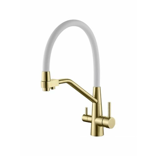 Купить Смеситель для кухни с подключением к фильтру гибкий излив Splenka S71.62.03 золотой сатин/белый с доставкой по всей России.