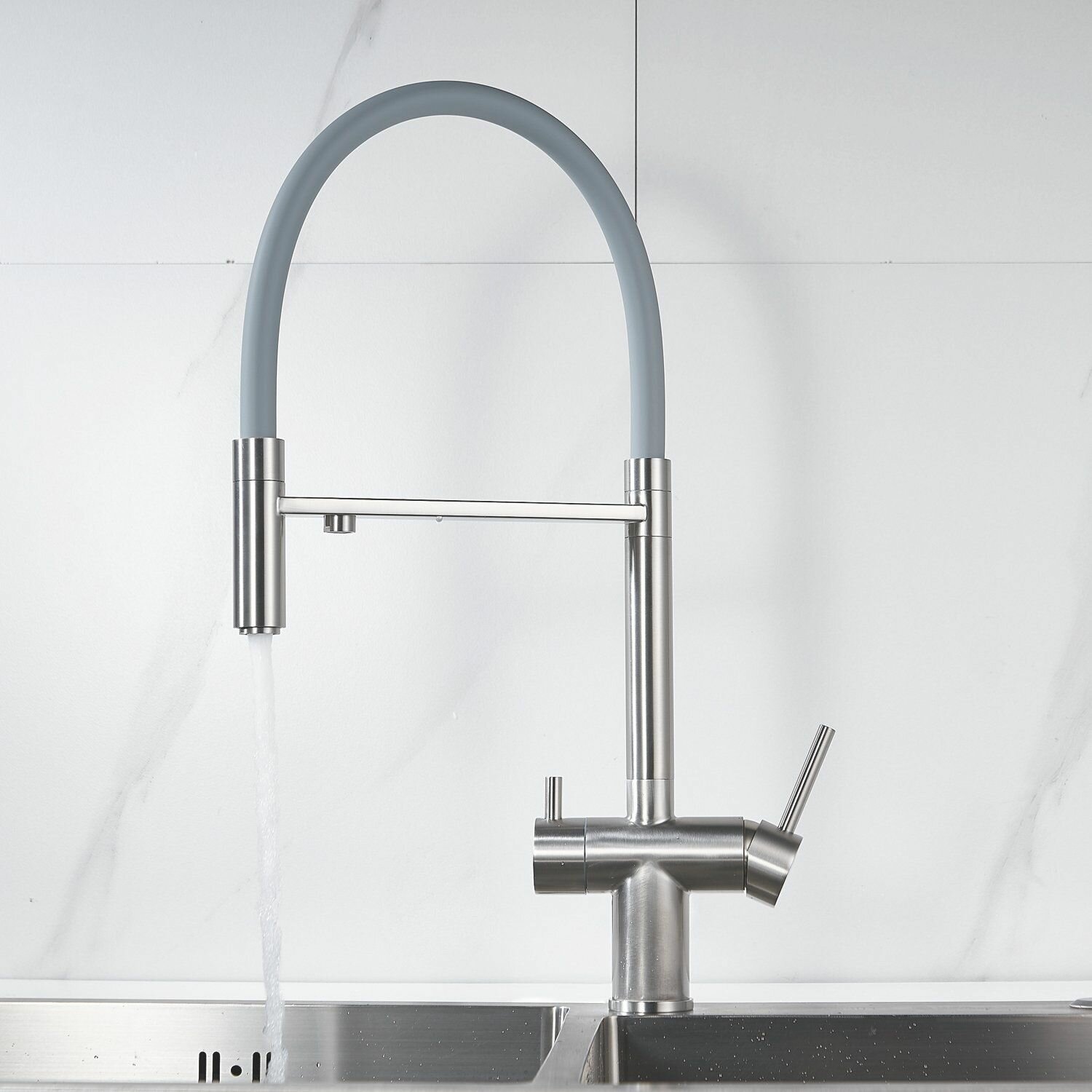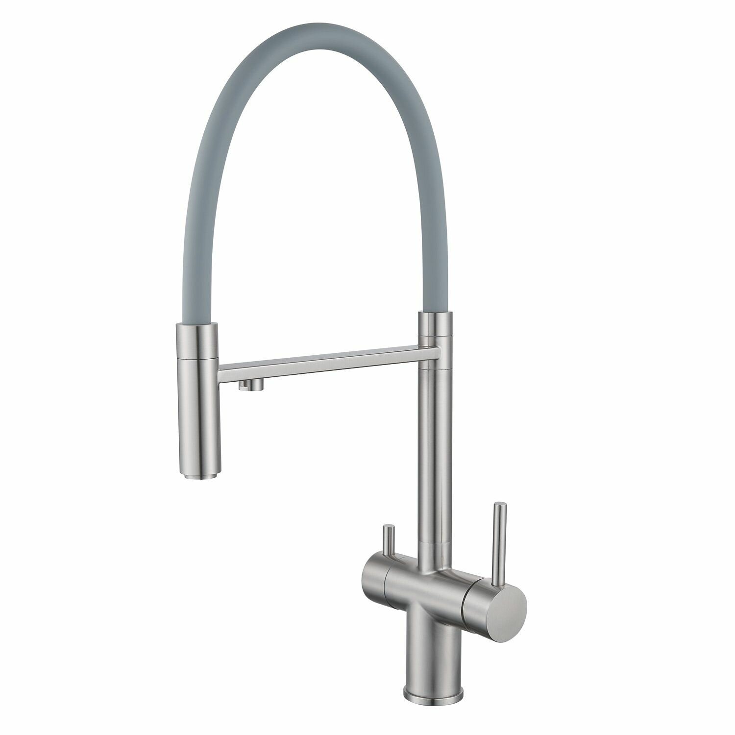 Смеситель предлагает удобное подключение к фильтру для воды, что позволяет наслаждаться чистой и безопасной питьевой водой прямо из крана. Благодаря высокому качеству изготовления и продуманному дизайну, этот смеситель для кухонной мойки гарантирует долговечность и надежность в использовании. Он обеспечит вас не только комфортом, но и эффективностью благодаря легкому управлению потоком воды.