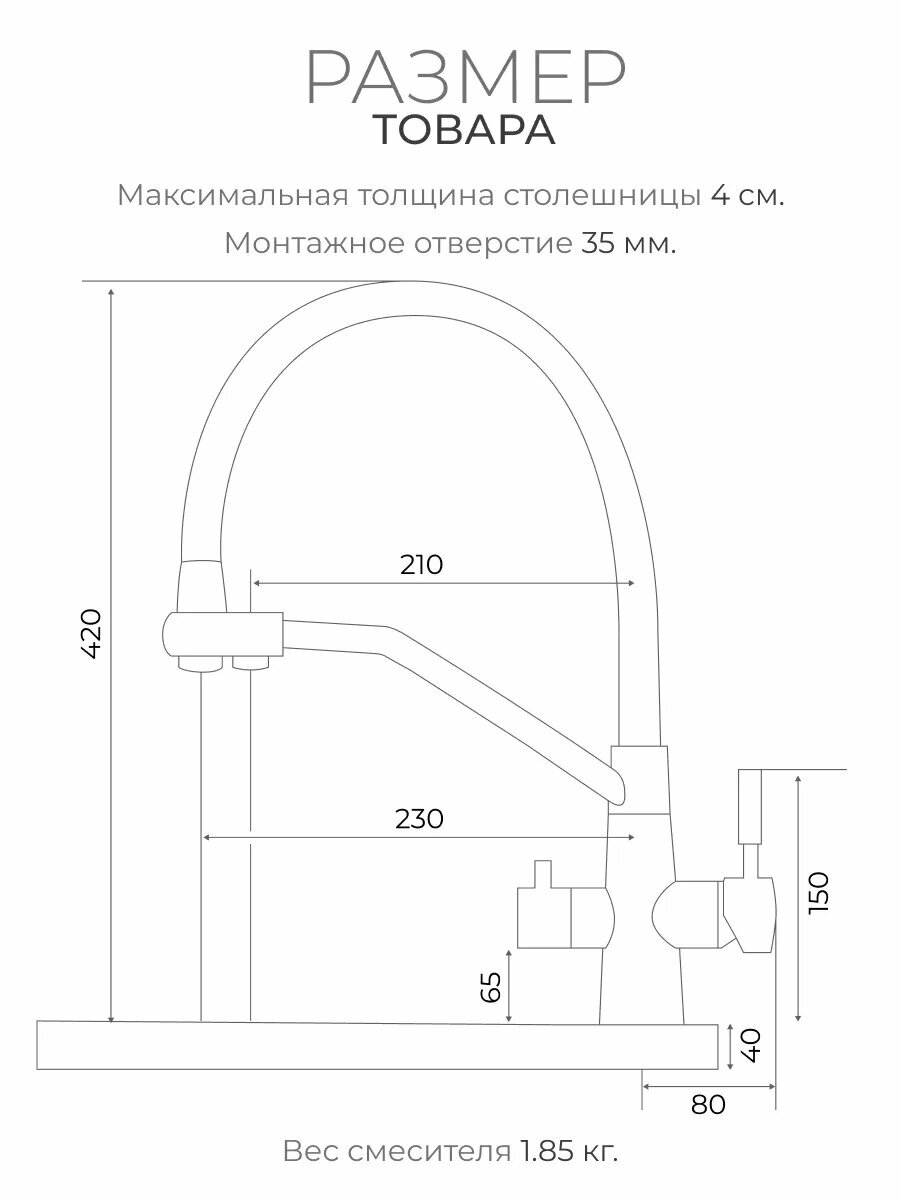 | Длина излива | 230 мм |
