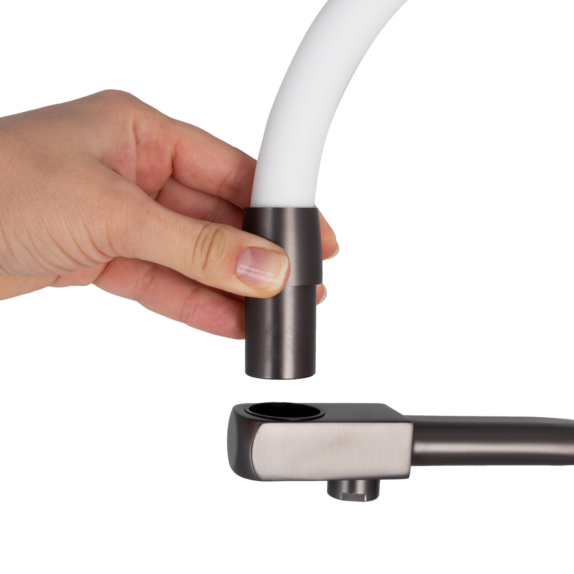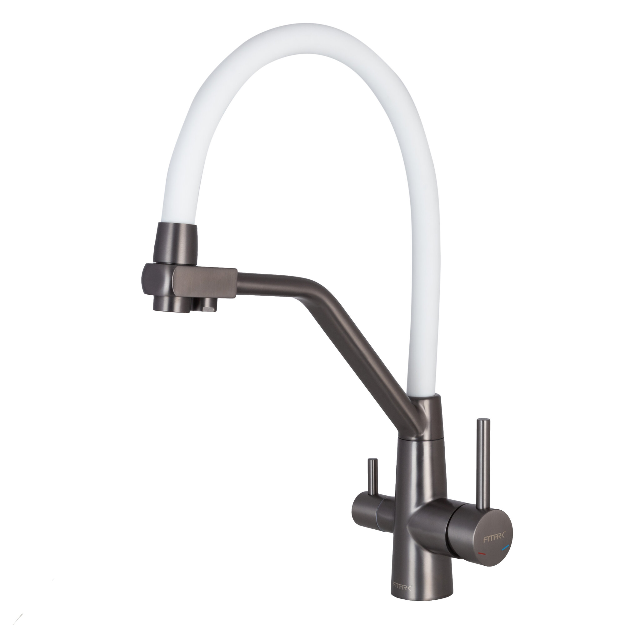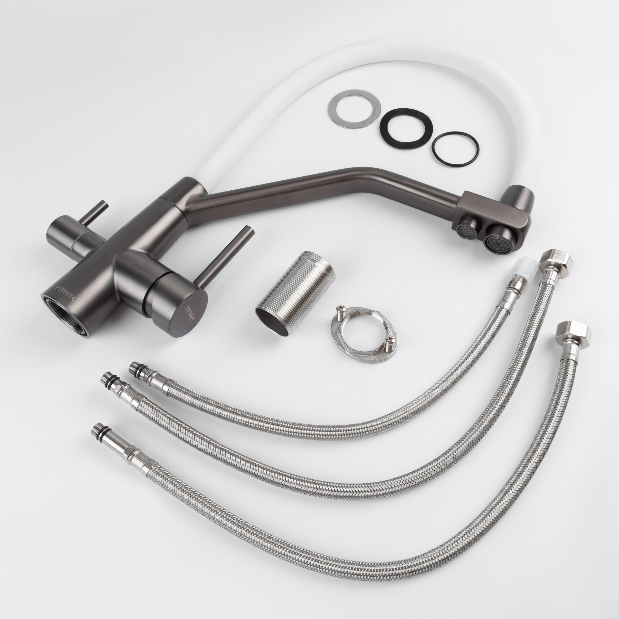 Смеситель для кухни с подключением под фильтр для питьевой воды, гибкий излив, высокий, поворотный, нержавеющая сталь, графит, белый: сравнение цен, характеристики, фото, актуальное наличие и цены.