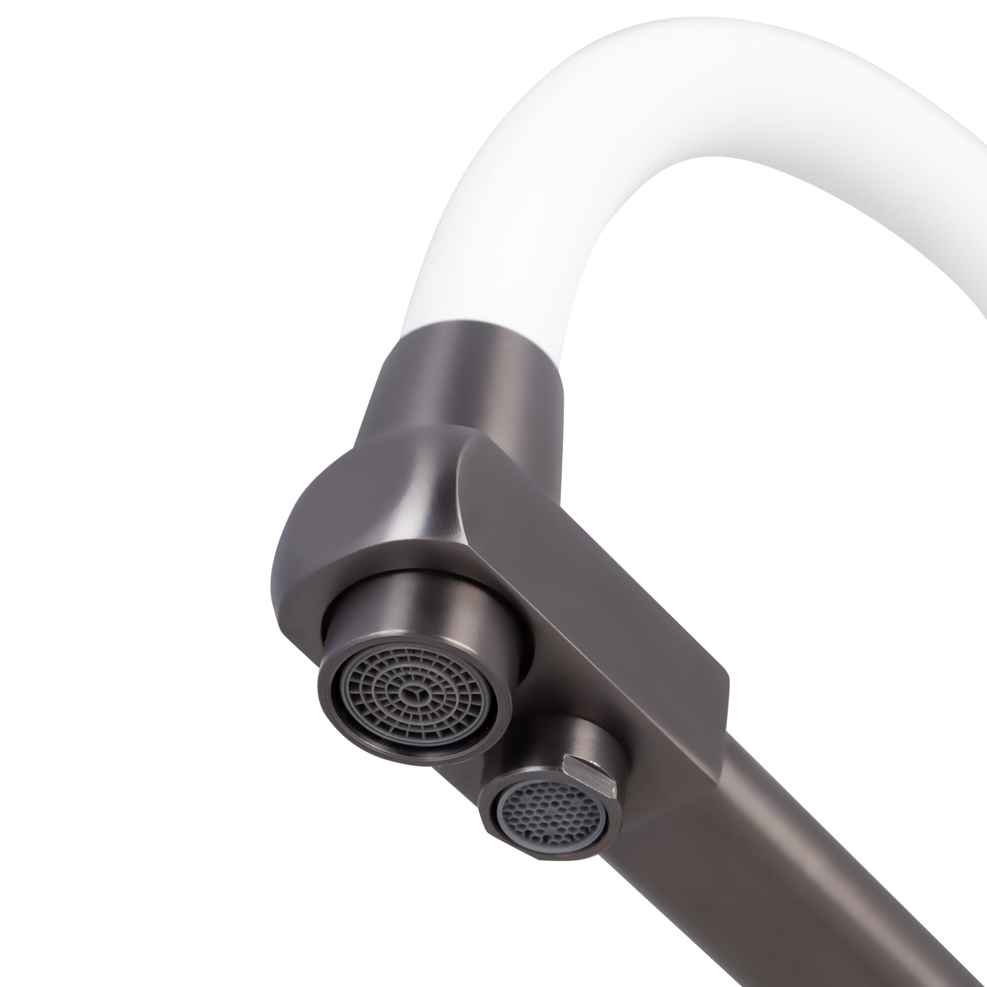 Купить Смеситель для кухни с подключением под фильтр для питьевой воды, гибкий излив, высокий, поворотный, нержавеющая сталь, графит, белый с доставкой по всей России.