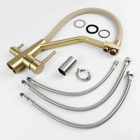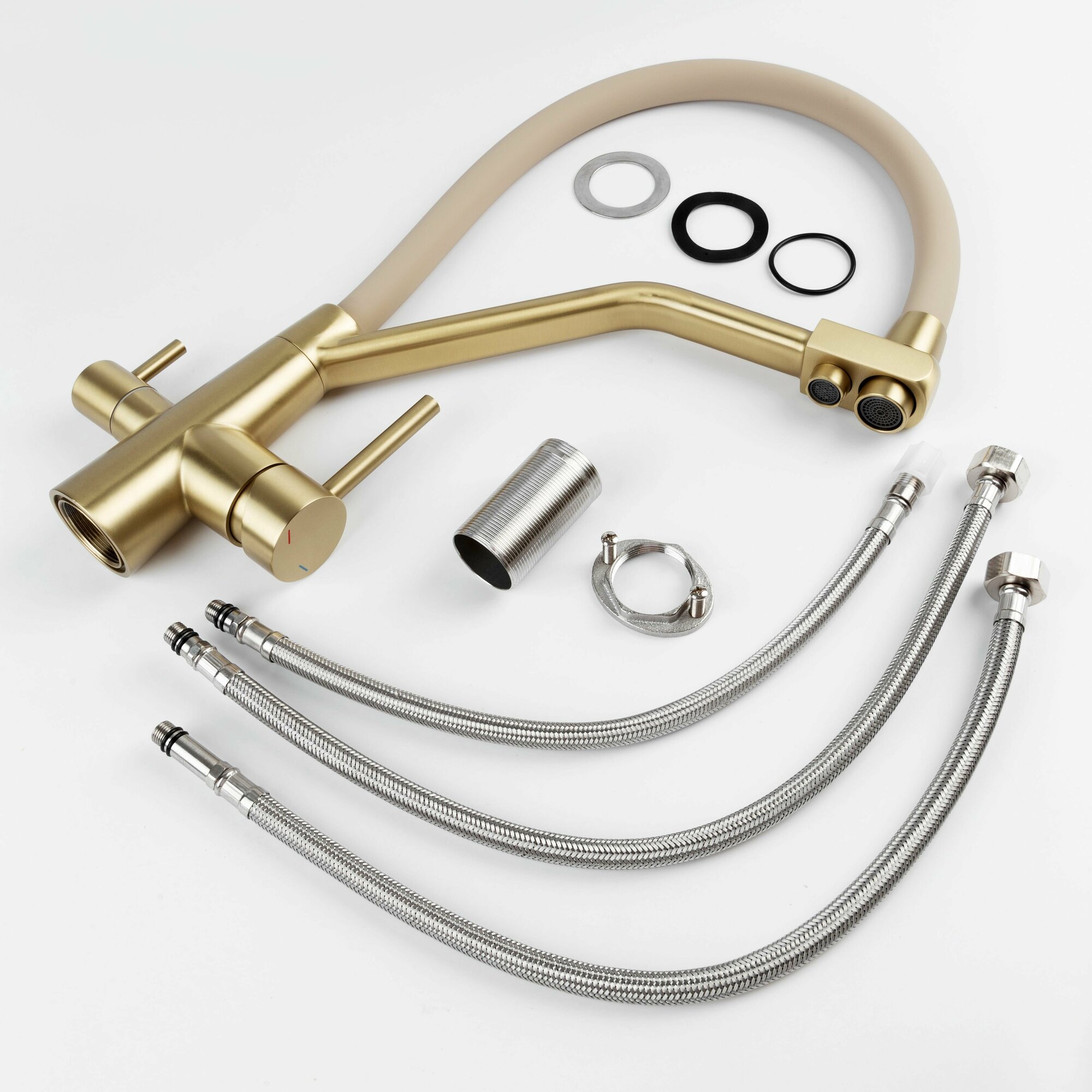 Смеситель для кухни с подключением под фильтр для питьевой воды, с съемным изливом, высокий, поворотный, нержавеющая сталь, бежевый, бронза: сравнение цен, характеристики, фото, актуальное наличие и цены.