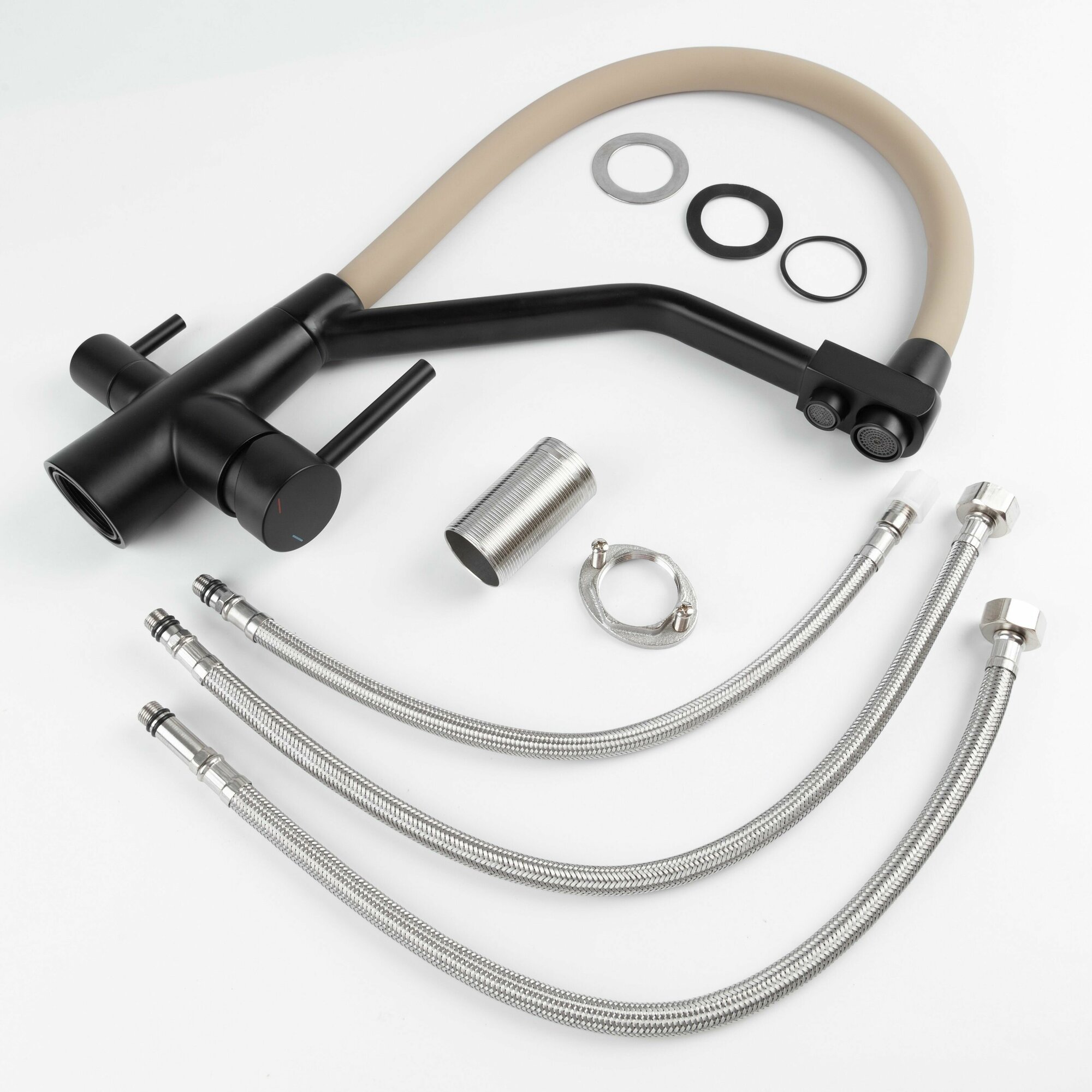 Смеситель для кухни с подключением под фильтр для питьевой воды, с съемным изливом, высокий, поворотный, нержавеющая сталь, черный, бежевый: сравнение цен, характеристики, фото, актуальное наличие и цены.