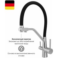 Смеситель для кухни с подключением под фильтр для питьевой воды, с съемным изливом, высокий, поворотный, нержавеющая сталь, черный, сатин: сравнение цен, характеристики, фото, актуальное наличие и цены.