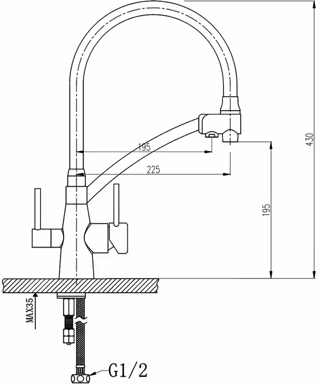 | Излив | гибкий, для фильтрованной воды, поворотный |