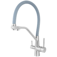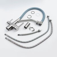 | Комплектация | Смеситель, прорезиненное уплотнительное кольцо, прокладка, крепеж, гибкая подводка под холодную и горячую воду и трубка полая под фильтрованную воду, переходник пластиковый под фильтр. |
