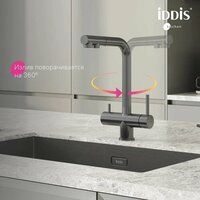 Купить Смеситель для кухни IDDIS Umbra UMBGMPFi05 с краном для питьевой воды, с поворотным изливом, черный, серый, матовый, однорычажный, латунный, с керамическим картриджем с доставкой по всей России.