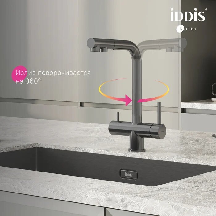 Смеситель для кухни IDDIS Umbra UMBGMPFi05 с краном для питьевой воды, с поворотным изливом, черный, серый, матовый, однорычажный, латунный, с керамическим картриджем: сравнение цен, характеристики, фото, актуальное наличие и цены.