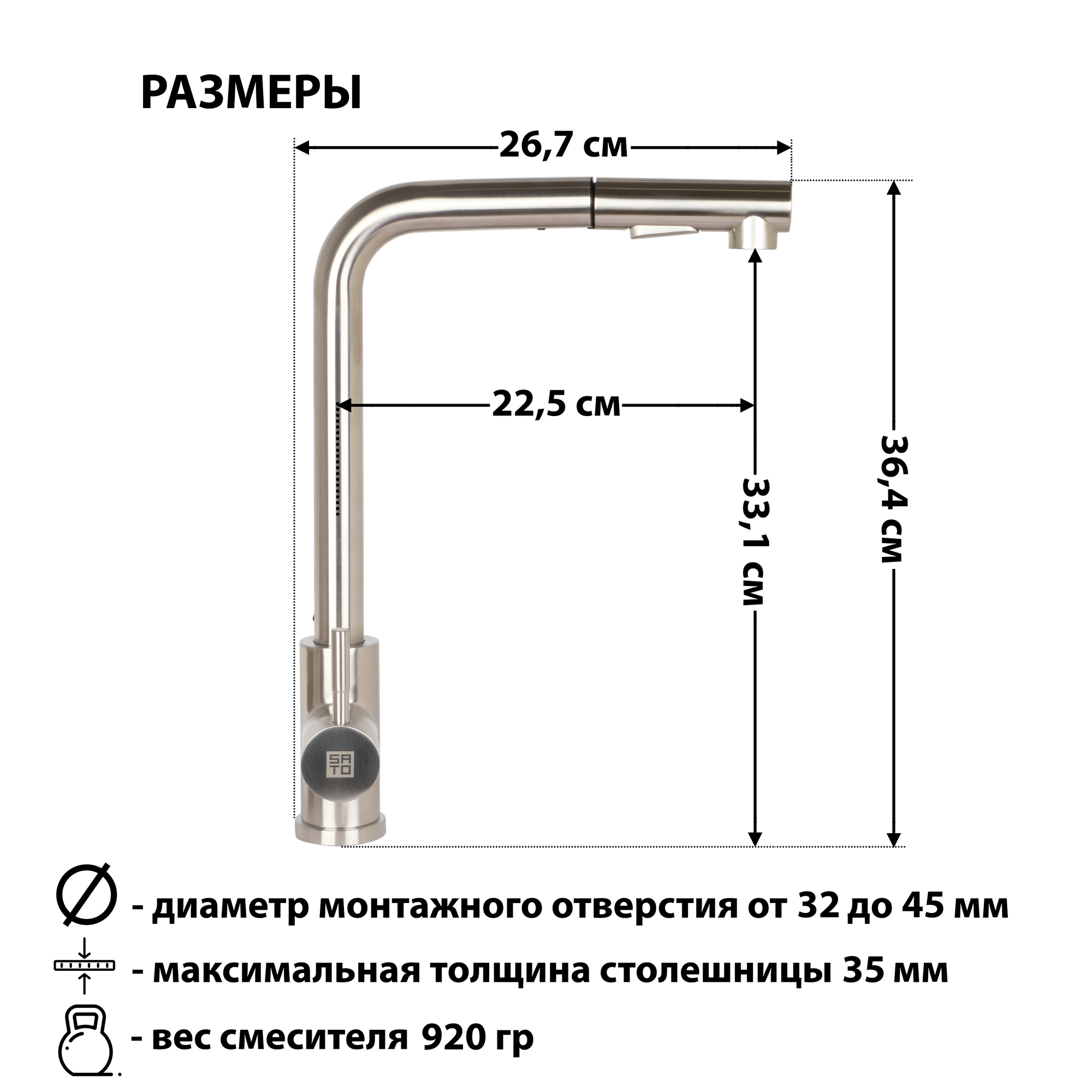 | Особенности | аэратор, встроенный фильтр, держатель душевой лейки, поворотный излив |