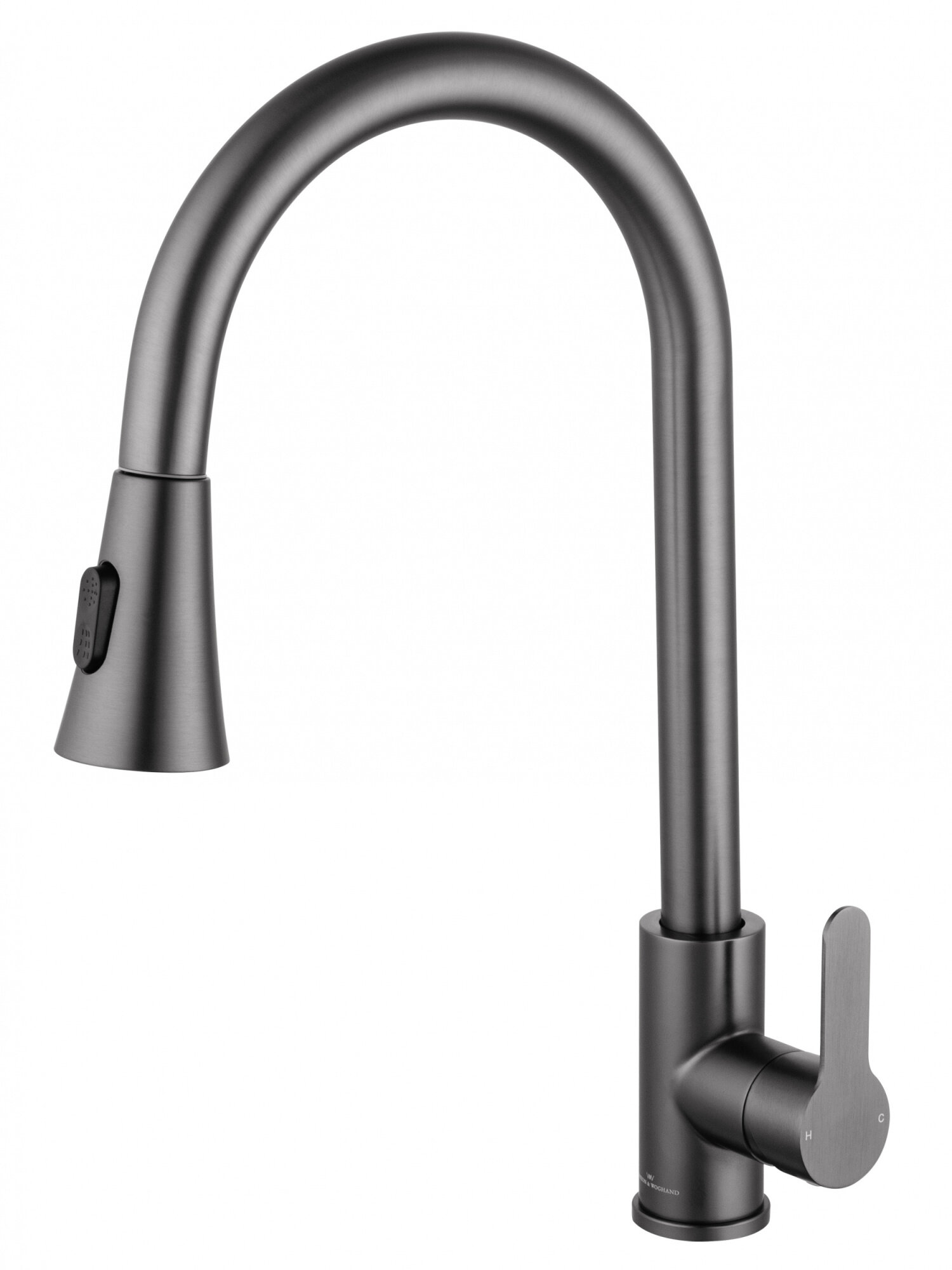 Купить Смеситель для кухни с выдвижным изливом WONZON & WOGHAND, темный графит WW-121E201L-BGG с доставкой по всей России.