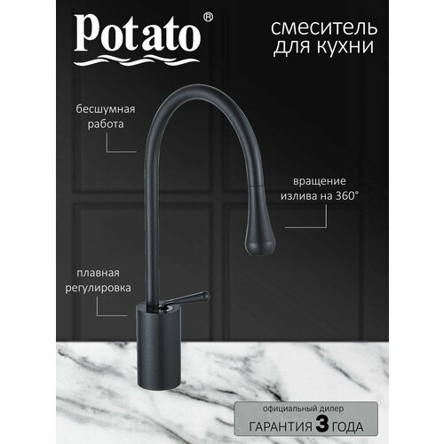 Купить Смеситель для кухни с высоким изливом Potato P41282-19, графитно-серый с доставкой по всей России. Смеситель для кухни с высоким изливом Potato P41282-19, графитно-серый: сравнение цен, характеристики, фото, актуальное наличие и цены.