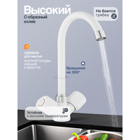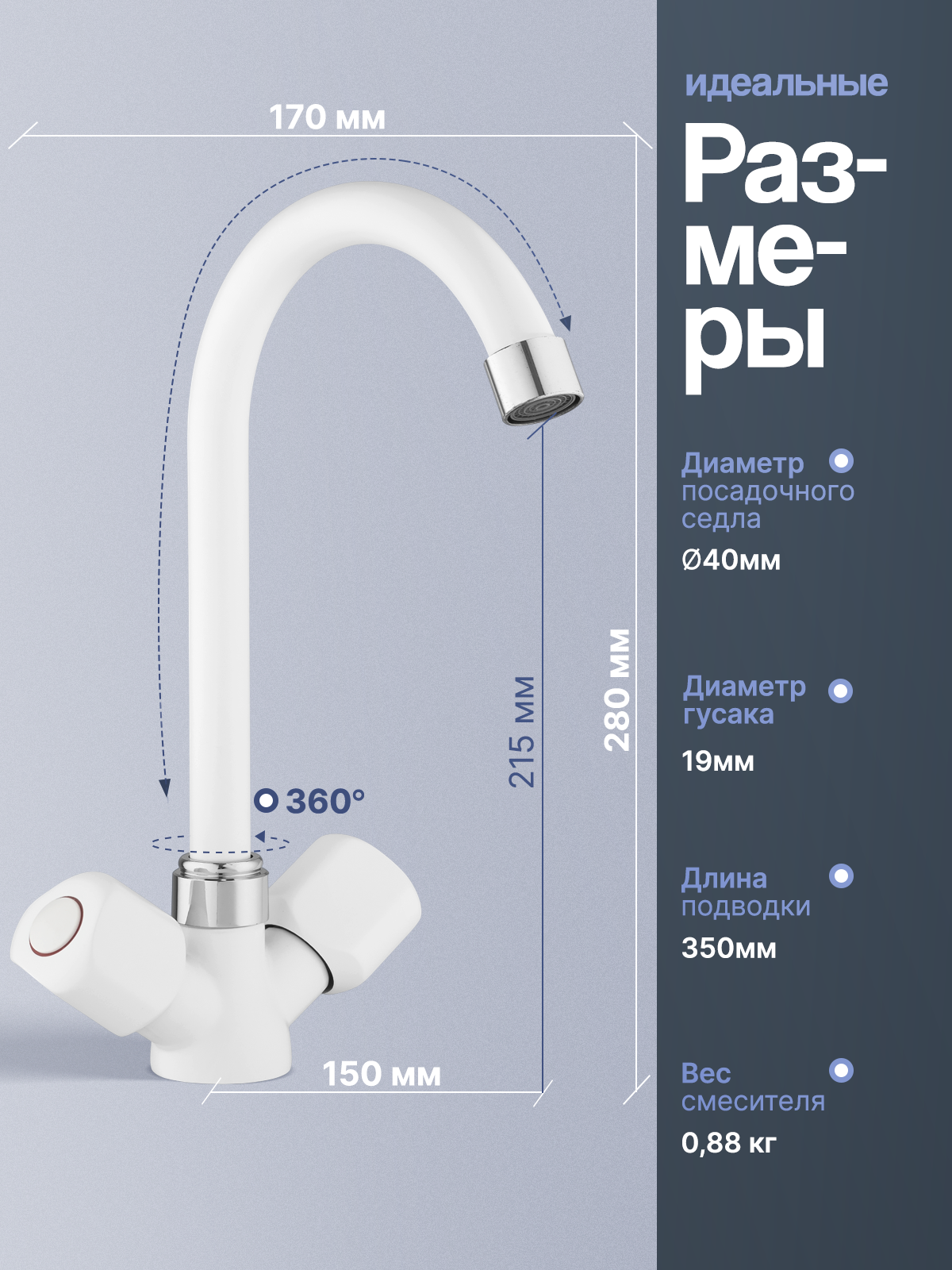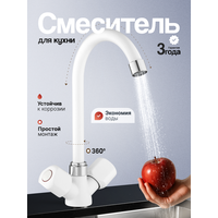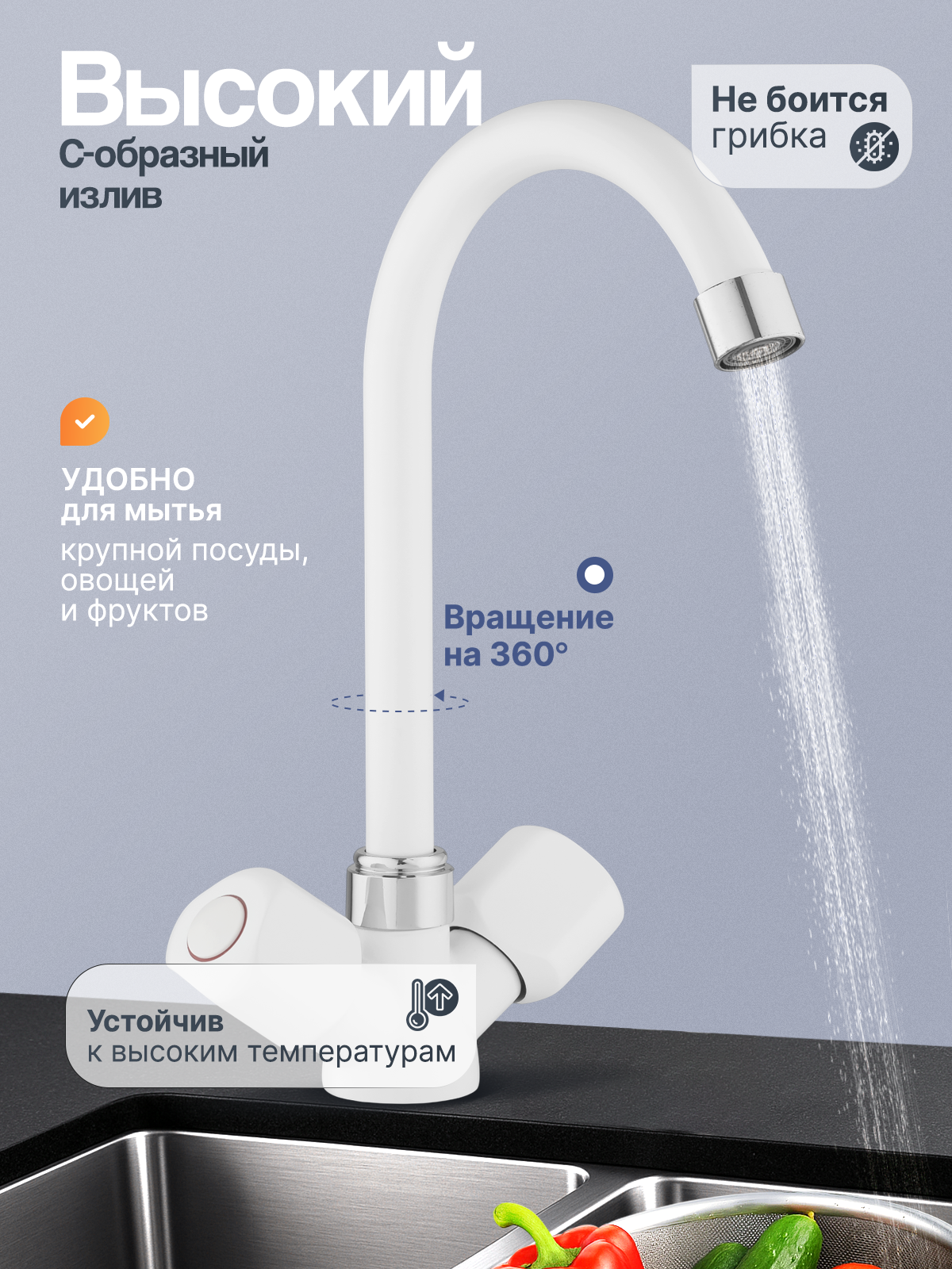 Смеситель для кухни с высоким поворотным изливом и вентильными ручками, белый с хромированными вставками: сравнение цен, характеристики, фото, актуальное наличие и цены.