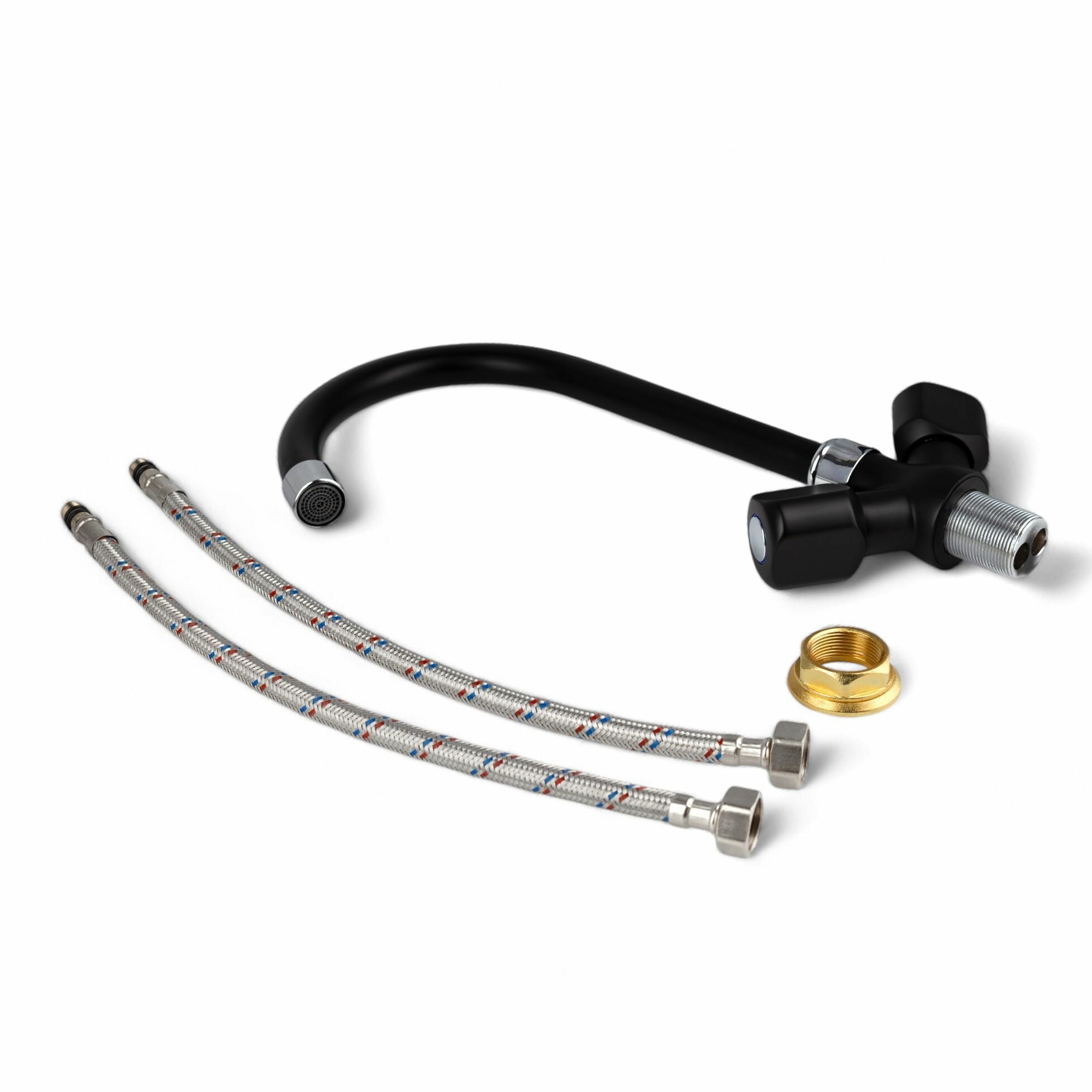 Смеситель для кухни с высоким поворотным изливом и вентильными ручками, черный с хромированными вставками: сравнение цен, характеристики, фото, актуальное наличие и цены.