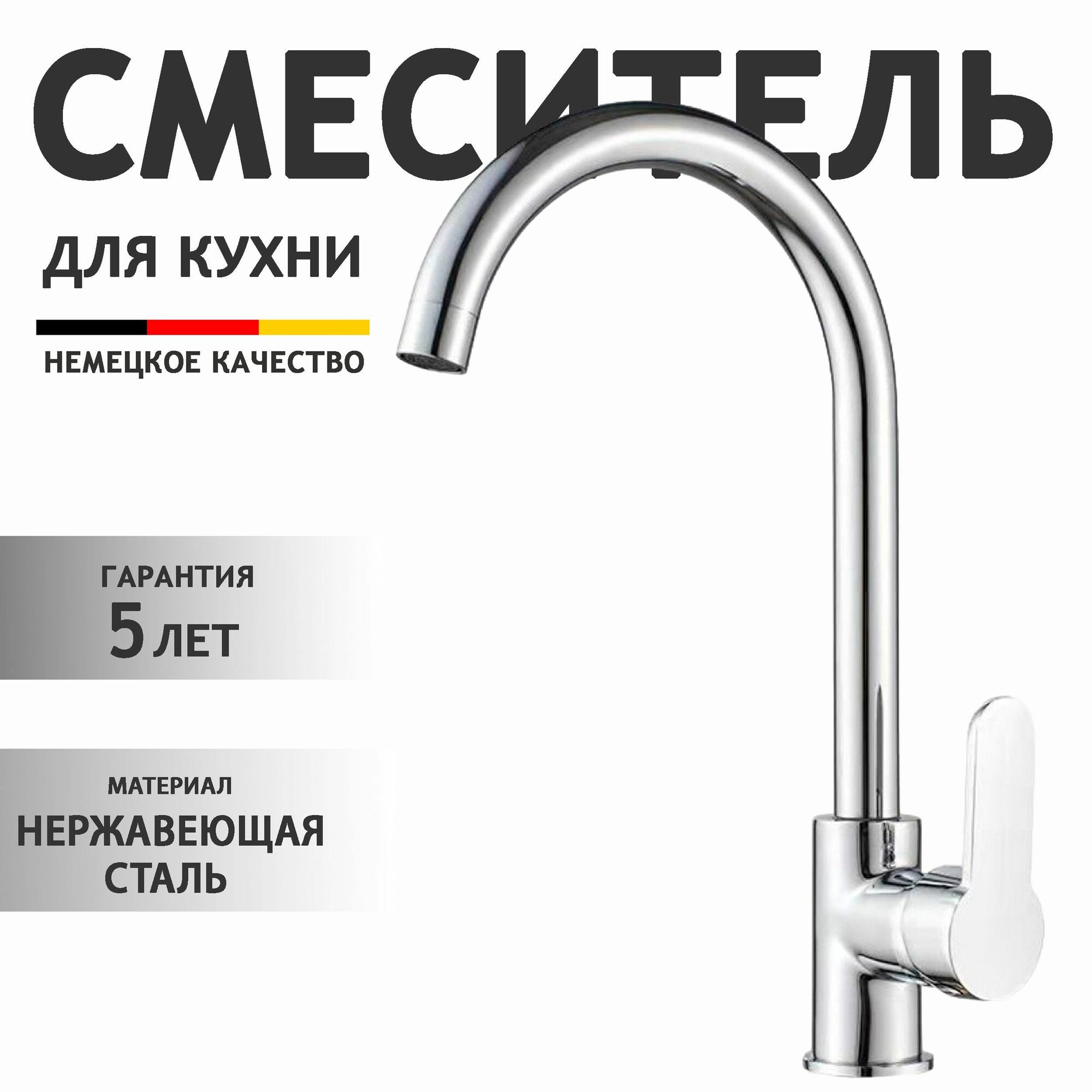 Купить Смеситель для кухни с высоким поворотным изливом / нержавеющая сталь / хром с доставкой по всей России. Смеситель для кухни с высоким поворотным изливом / нержавеющая сталь / хром: сравнение цен, характеристики, фото, актуальное наличие и цены.