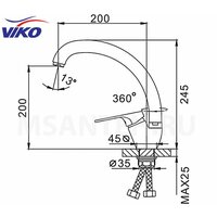 Купить Смеситель для кухни с высоким поворотным изливом V-3024 Черный с доставкой по всей России.