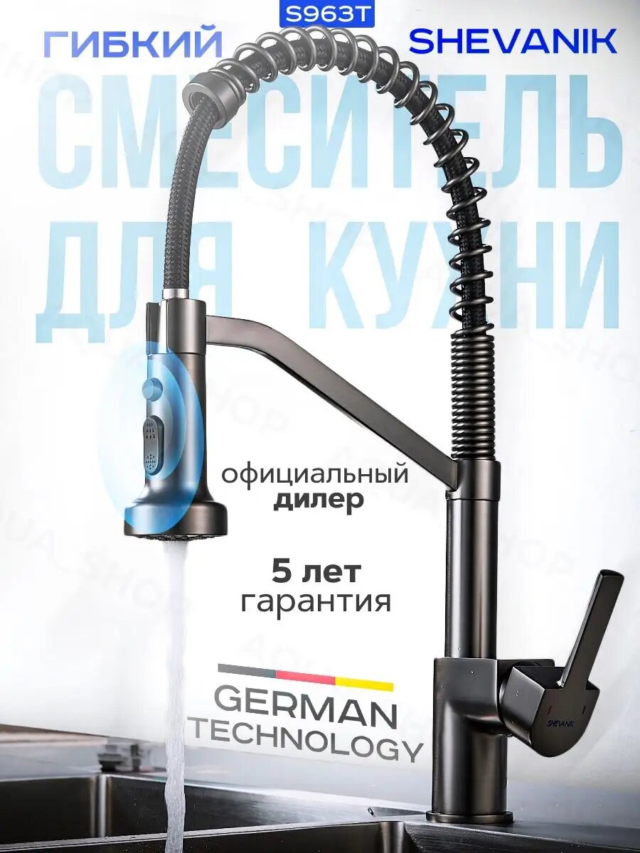 Смеситель для кухни S963T с гибким изливом шлангом и душем: сравнение цен, характеристики, фото, актуальное наличие и цены.
