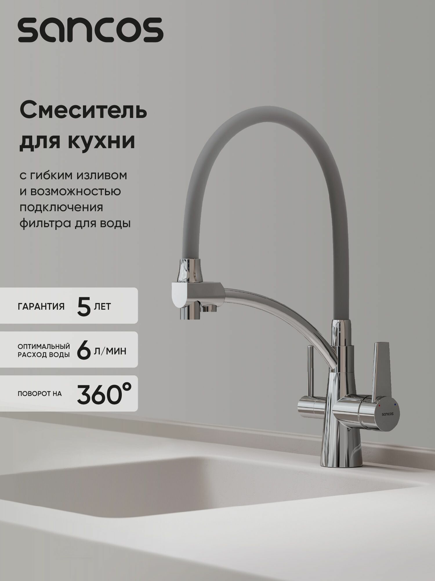 Купить Смеситель для кухни Sancos Eri с гибким изливом и краном под фильтр для питьевой воды, хром SC4001CH с доставкой по всей России.