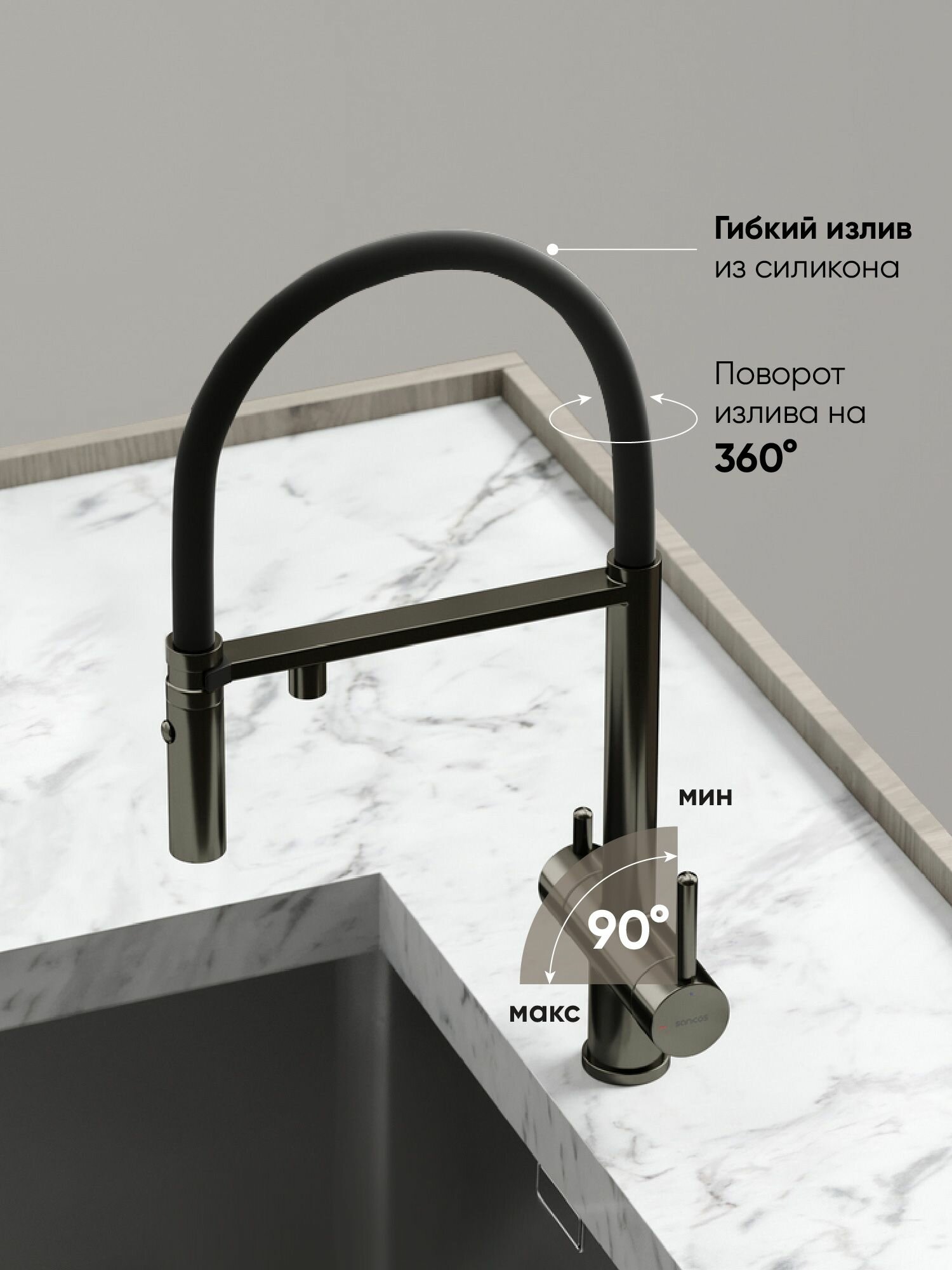 | Излив | гибкий, поворотный |