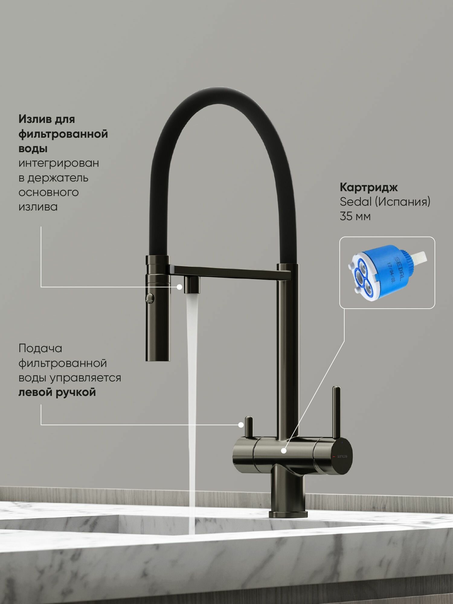 | Особенности | аэратор, встроенный фильтр, держатель душевой лейки, поворотный излив |