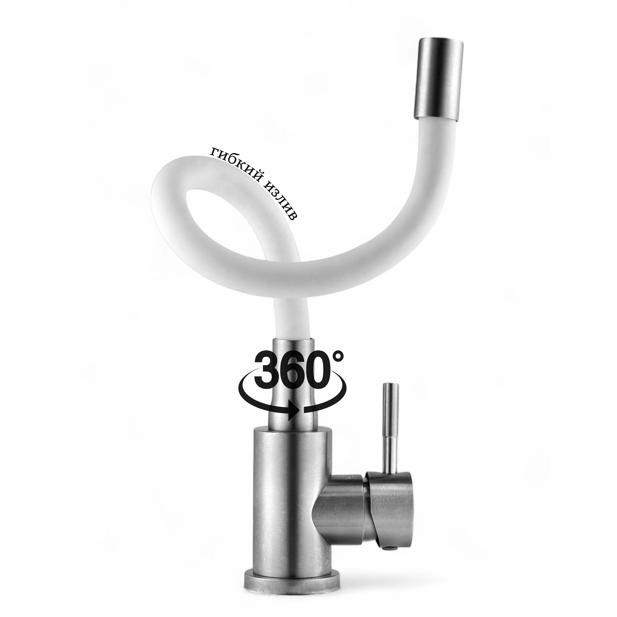 Смеситель для кухни сатиновый с гибким белым изливом, Wasser Zimmer